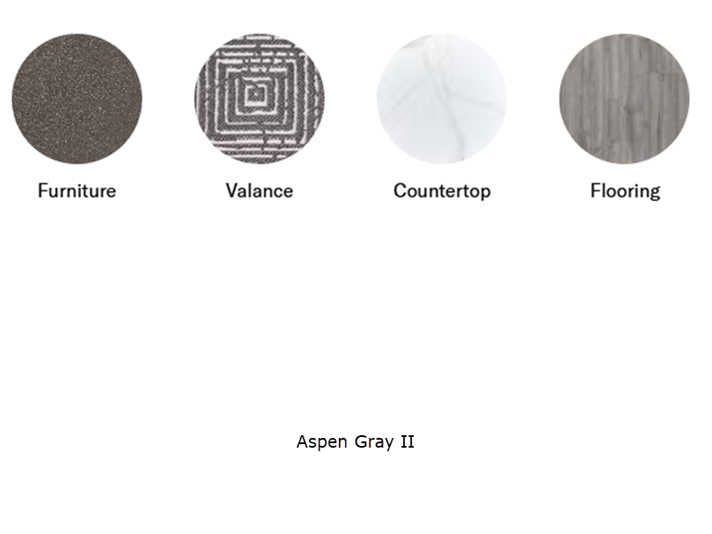 Sleeps 6 Slides 2 Length 31 ft 11 in Ext Width 8 ft 3 in Ext Height 12 ft 2 in Int Height 7 ft Interior Color Aspen Gray II, Grand Haven Exterior Color Standard Graphics on HD-Max Hitch Weight 8000 lbs GVWR 18000 lbs Fresh Water Capacity 50 gals Grey Water Capacity 40 gals Black Water Capacity 40 gals Tire Size 19.5" Furnace BTU 35000 btu Generator Onan RV QG 4000 Gas Fuel Type Gas Engine Triton 7.3L V8 Chassis Ford F-53 Horsepower 335 hp Fuel Capacity 80 gals Wheelbase 208 in Number Of Bunks 1 Available Beds King Torque 468 ft-lb Refrigerator Type Double Door Refrigerator Size 3 cu ft Cooktop Burners 3 Shower Size 30" x 36" Number of Awnings 1 LP Tank Capacity 88 lbs Water Heater Type Tankless AC BTU 27000 btu Basement Storage 71 cu. ft. TV Info LR 40" LED Smart TV, BR 32" LED Smart TV, Ext. 32" LED Smart TV Awning Info 19' Gross Combined Weight 23000 lbs Shower Type Standard Electrical Service 50 amp Similar Floorplans