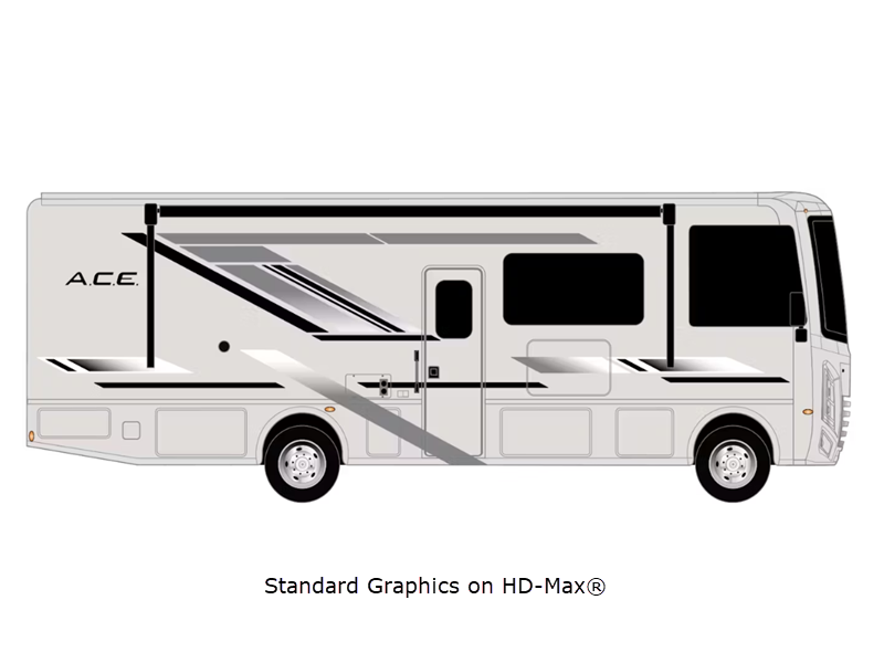 The A.C.E Class A gas motorhome by Thor Motor Coach is the pet-friendly and family-friendly coach you've been searching for! Your excursions will be powered by a 7.3L Triton V8 engine with 350 HP that sits on a durable Ford F-53 chassis, and the HD-MAX exterior with a graphics package and partial paint is sure to be show-stopping!